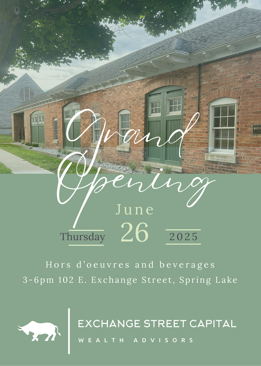 Join us to celebrate the grand opening of Exchange Street Capital with hors d'oevres, beverages and giveaways.